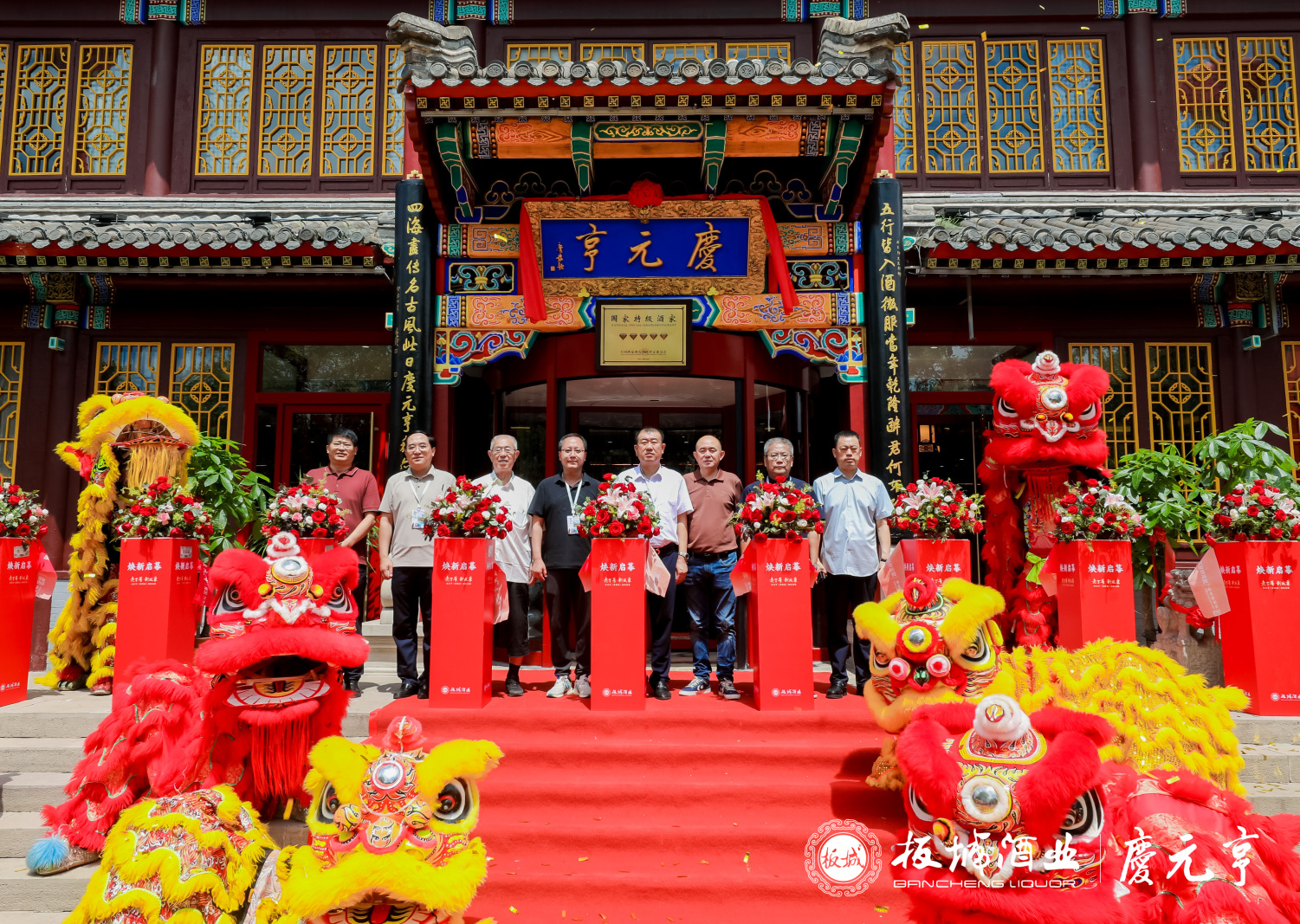 震撼人心的舞獅表演后,河北板城酒業(yè)黨委書記、總經理張春生;承德市工商聯副主席唐楠松;承德慶元亨餐飲有限公司董事長徐宏生;慶元亨老店第七代傳承人段士錚;國家商務部“中華老字號”保護發(fā)展工程專家郭會斌;承德市酒業(yè)協會理事長劉磊斌;承德市企業(yè)家聯合商會會長蔡靜;承德國鑫集團董事長柴國;共同為承德慶元亨煥新啟幕剪彩。