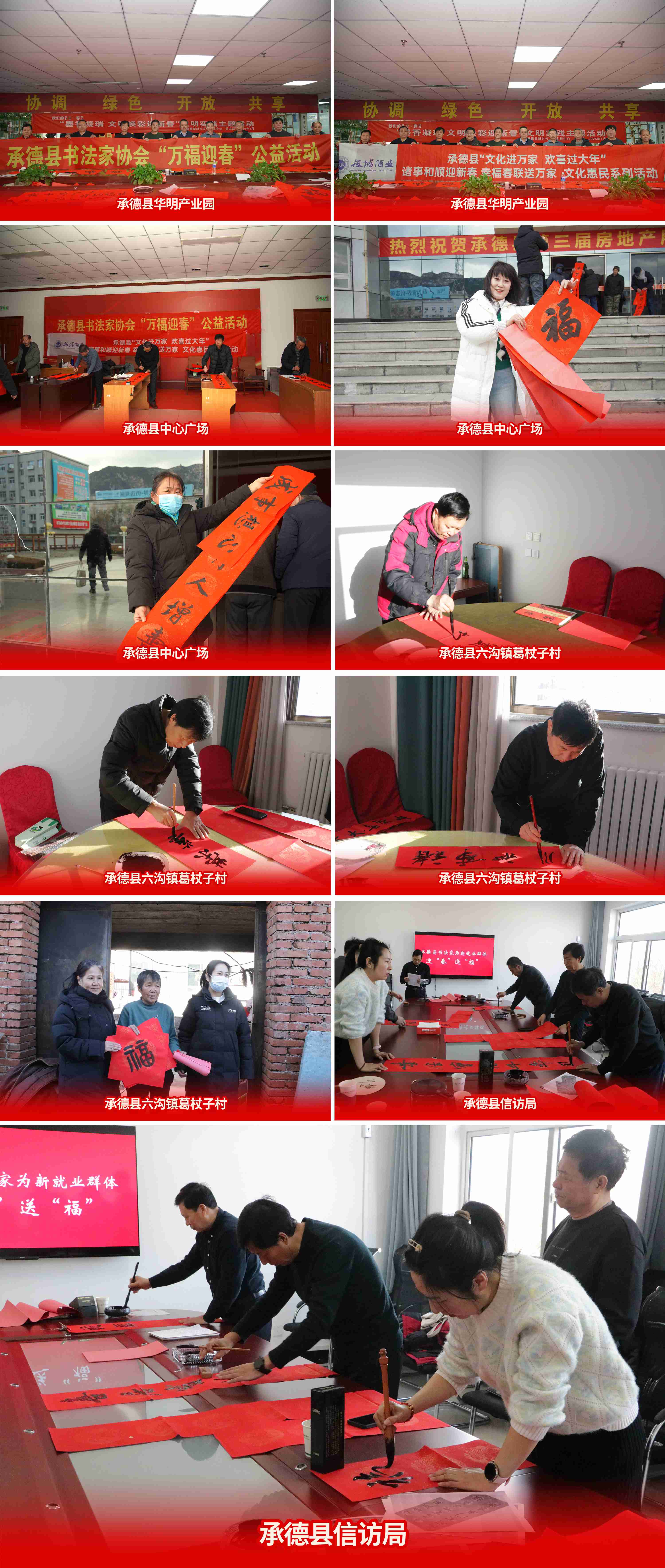 承德縣“文化進(jìn)萬(wàn)家歡喜過(guò)大年”暨“諸事和順迎新春幸福春聯(lián)送萬(wàn)家”文化惠民系列活動(dòng)暖心進(jìn)行中,后續(xù)將走進(jìn)更多鄉(xiāng)鎮(zhèn),將寓意美好祝福的春聯(lián)和“福”字送入承德縣千家萬(wàn)戶(hù)!