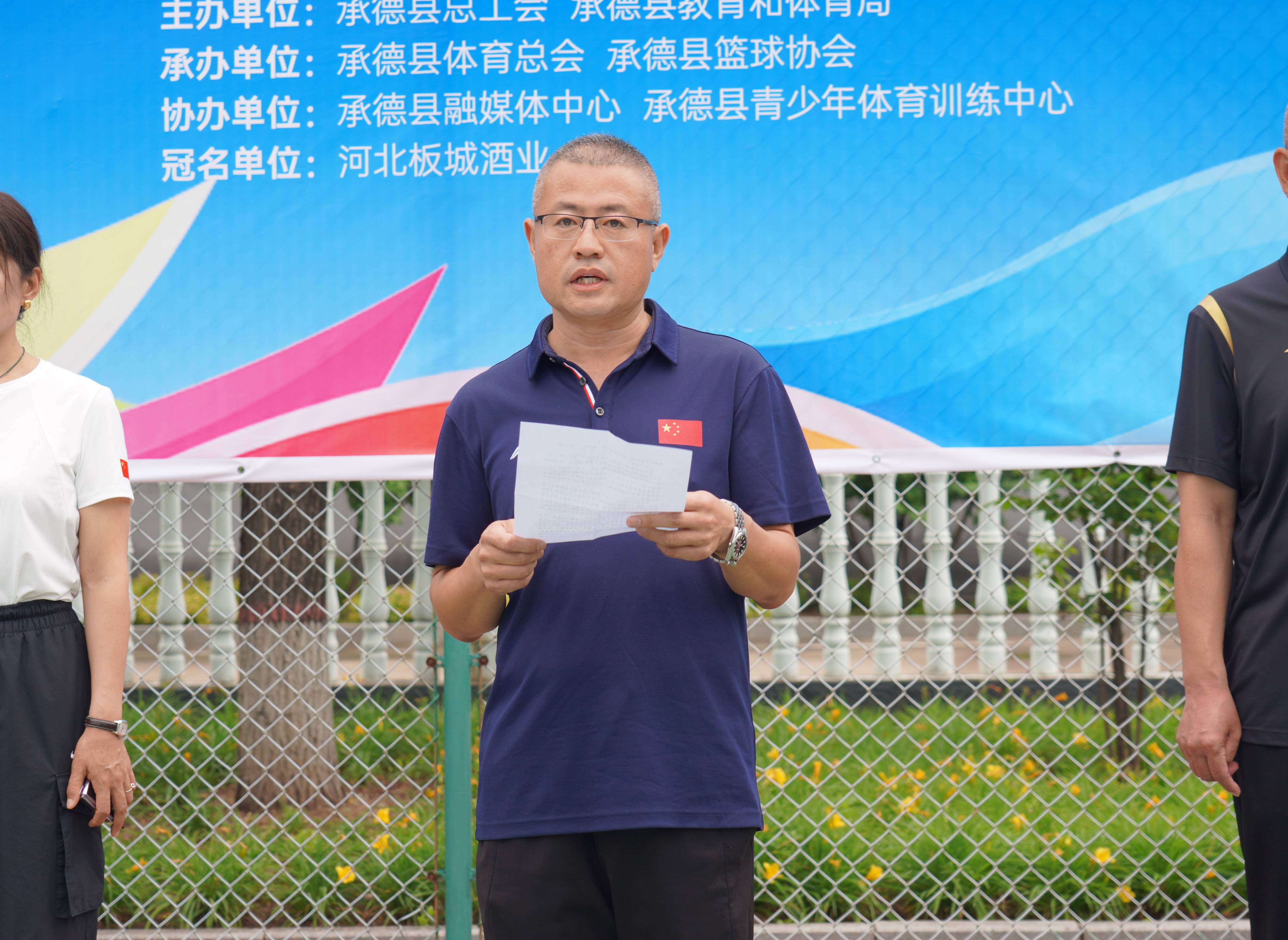 承德縣教育和體育局班子成員、體育工作指導(dǎo)中心主任朱瑞東,承德縣總工會黨組成員經(jīng)審委主任高文峰,板城酒業(yè)承德南部戰(zhàn)區(qū)和順部區(qū)域經(jīng)理胡聚偉,承德縣籃協(xié)協(xié)會會長申國民,承德縣體育總會總召集人王子忠,承德縣青少年體育訓練中心主任段連雪,承德縣安匠鎮(zhèn)人大副主席高靜,比賽裁判長宋文劍出席本次開幕式。