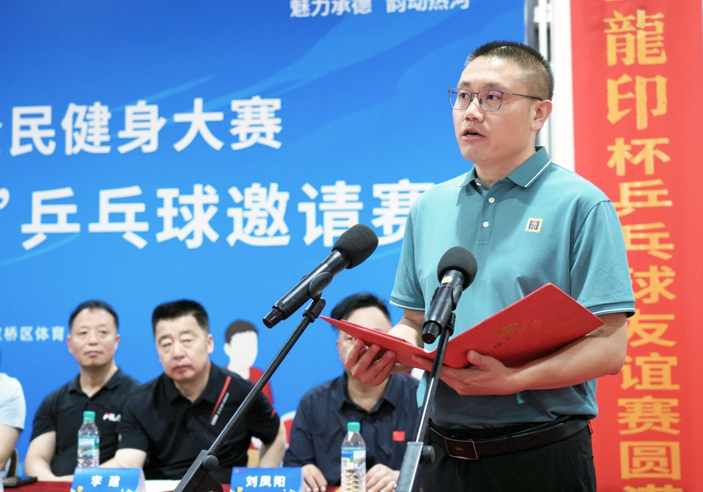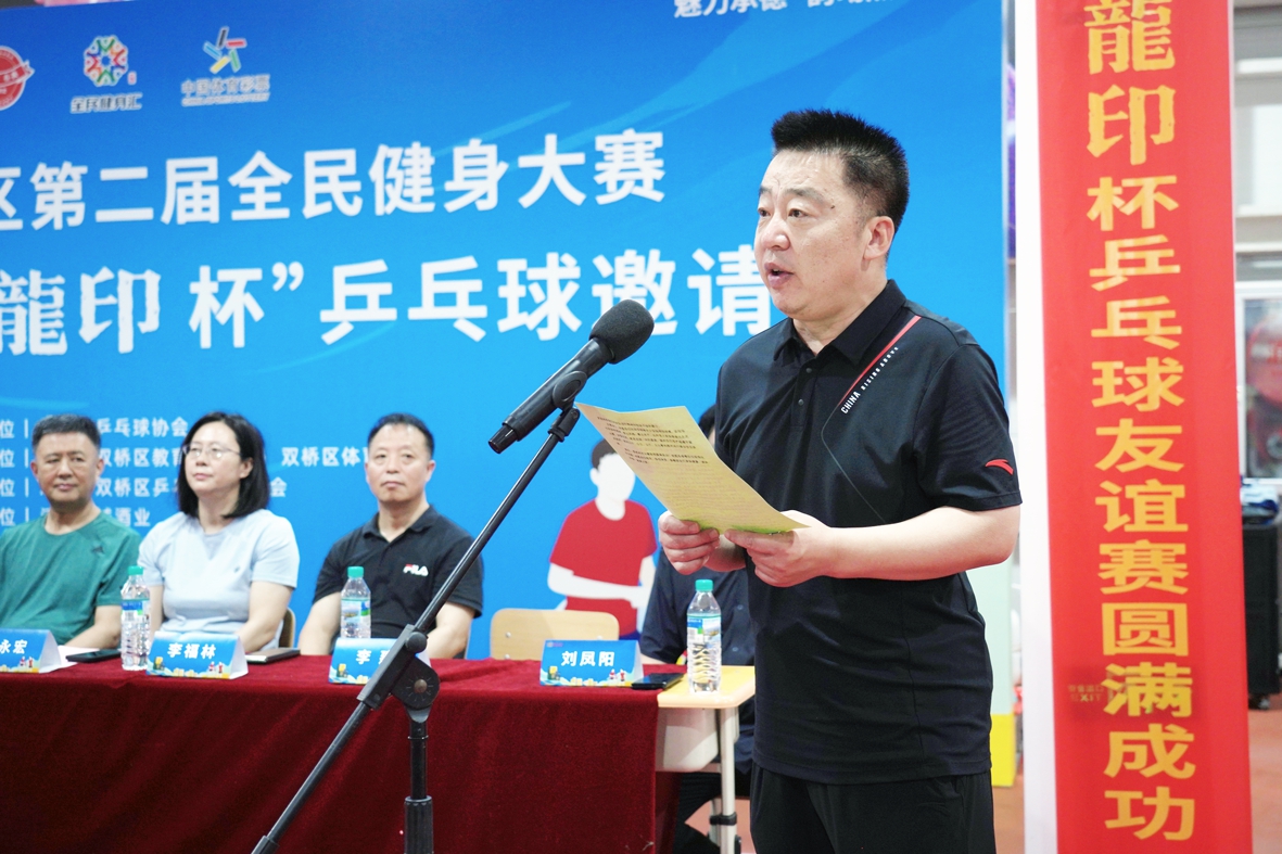 雙橋區(qū)教育和體育局局長(zhǎng)李建致辭,他講到:“舉辦此次乒乓球賽是為廣大市民搭建了健身平臺(tái),為六省的乒乓球運(yùn)動(dòng)員提供了相互交流的機(jī)會(huì),也是推動(dòng)我區(qū)乒乓球運(yùn)動(dòng)發(fā)展,滿足我區(qū)人民群眾健身、健康需求的重要舉措,希望大家能積極享受比賽,感受體育魅力。”