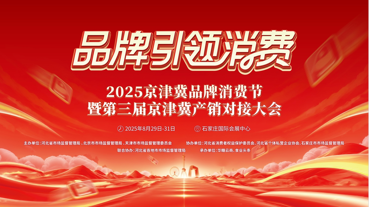 聚勢同行·共啟新程。8月28-31日,在石家莊國際會(huì)展中心舉行2025京津冀品牌消費(fèi)節(jié)暨第三屆京津冀產(chǎn)銷對接大會(huì)。本次活動(dòng)由河北省市場監(jiān)督管理局、北京市市場監(jiān)督管理局、天津市市場監(jiān)督管理委員會(huì)主辦,華糖云商、食業(yè)頭條承辦。