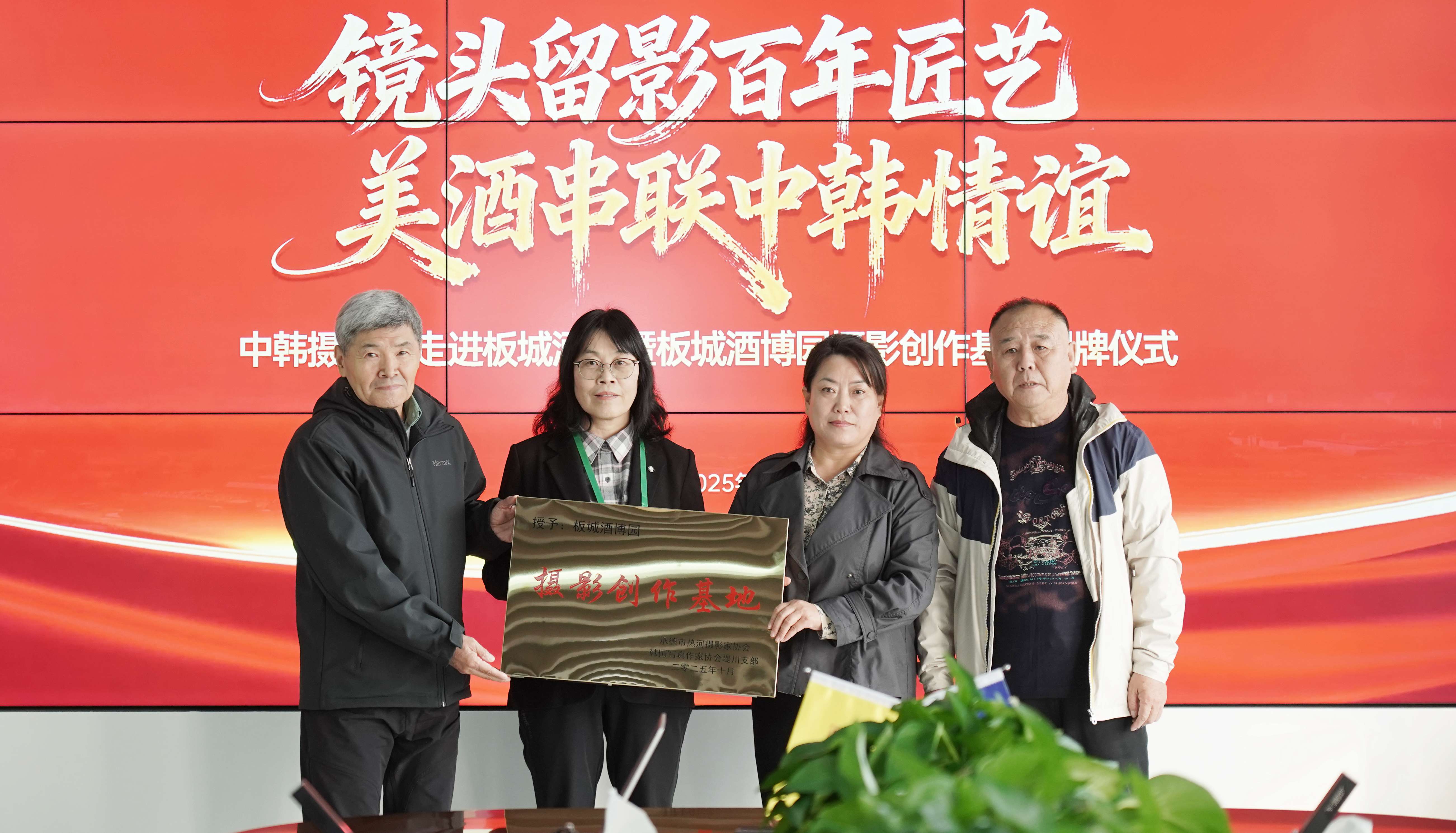 板城酒業(yè)行政總監(jiān)郝華杰講到:“中韓兩國(guó)地緣相近,人文交流源遠(yuǎn)流長(zhǎng)。攝影作為一門(mén)跨越語(yǔ)言障礙的藝術(shù),是連接心靈、增進(jìn)理解的橋梁。此次中韓攝影家交流活動(dòng),不僅是一次藝術(shù)的盛會(huì),更是一次友誼的深化。板城酒業(yè)被授予'板城酒博園攝影創(chuàng)作基地'的殊榮,我們倍感榮幸與自豪。這塊牌匾,是對(duì)板城酒業(yè)歷史底蘊(yùn)與文化價(jià)值的肯定。同時(shí),我們也借這塊牌匾發(fā)出一份鄭重的邀請(qǐng),邀請(qǐng)各位藝術(shù)家,將板城酒業(yè)當(dāng)作一個(gè)可以作品拍攝、自由探索的藝術(shù)創(chuàng)作基地。”
