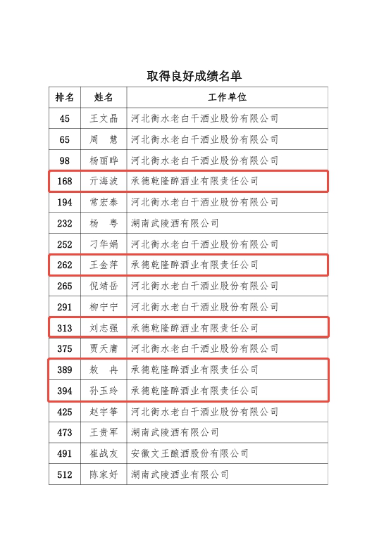 在第五屆全國(guó)白酒品酒職業(yè)技能競(jìng)賽中,衡水老白干及旗下四家子公司18位選手穩(wěn)定發(fā)揮,取得良好賽果,被聘任為“2025屆國(guó)家級(jí)白酒評(píng)酒委員”;其中板城酒業(yè)孫玉玲、劉志強(qiáng)、王金萍、敖冉、亓海波5位選手參加比賽,通過比賽斬獲優(yōu)異成績(jī),均被聘任為“2025屆國(guó)家級(jí)白酒評(píng)酒委員”。板城酒業(yè)成為河北省除衡水老白干酒業(yè)外最多入選人數(shù)的酒企,其中,敖冉、亓海波兩名選手初次參賽獲聘國(guó)家級(jí)白酒評(píng)酒委員。